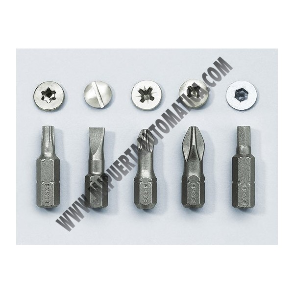 Puntas atornillar: torx, plana, cruz, posidriv y exagonal.