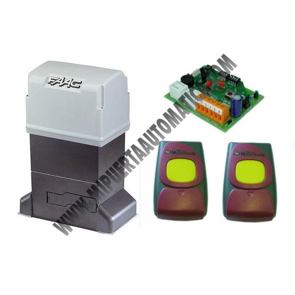 Accionamiento FAAC para puertas correderas de uso residencial para peso máximo de hasta 600 kg, para cancelas correderas, con radiofrecuencia en 433 MHz.